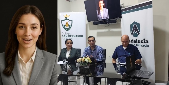 La Sociedad San Bernardo presentó a Sofía, su nueva asistente virtual, que acompañará a estudiantes, docentes y familias de los colegios San Bernardo y Andalucía, ofreciendo orientación, apoyo pedagógico y contenidos educativos innovadores. La conferencia de prensa fue dirigida por Gonzalo Ávila, presidente del Directorio de la Sociedad, quien destacó la importancia de la innovación tecnológica en el proceso educativo.